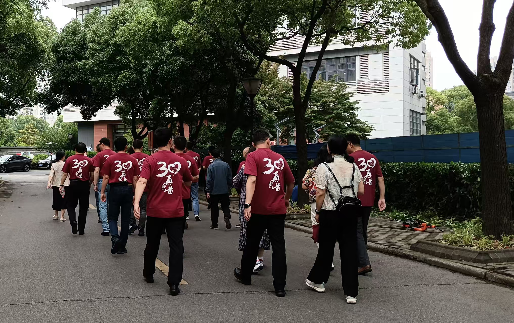上午10时,员工们陆续抵达学校,身着统一纪念文化衫,在长阳路2588号杨浦校区门口前合影留念。随后,在志愿者的引导下,员工们参观了英华楼、图书馆、行政楼、教学楼、宿舍楼及奋进楼实验室。面对焕然一新的校园设施与科研成果展示,员工们感慨万千,纷纷赞叹母校在团队建设与技术创新上的飞速发展。漫步于曾经学习生活的地方,回忆当年的点滴时光,校园的一草一木勾起了员工们对青春岁月的无限怀念。