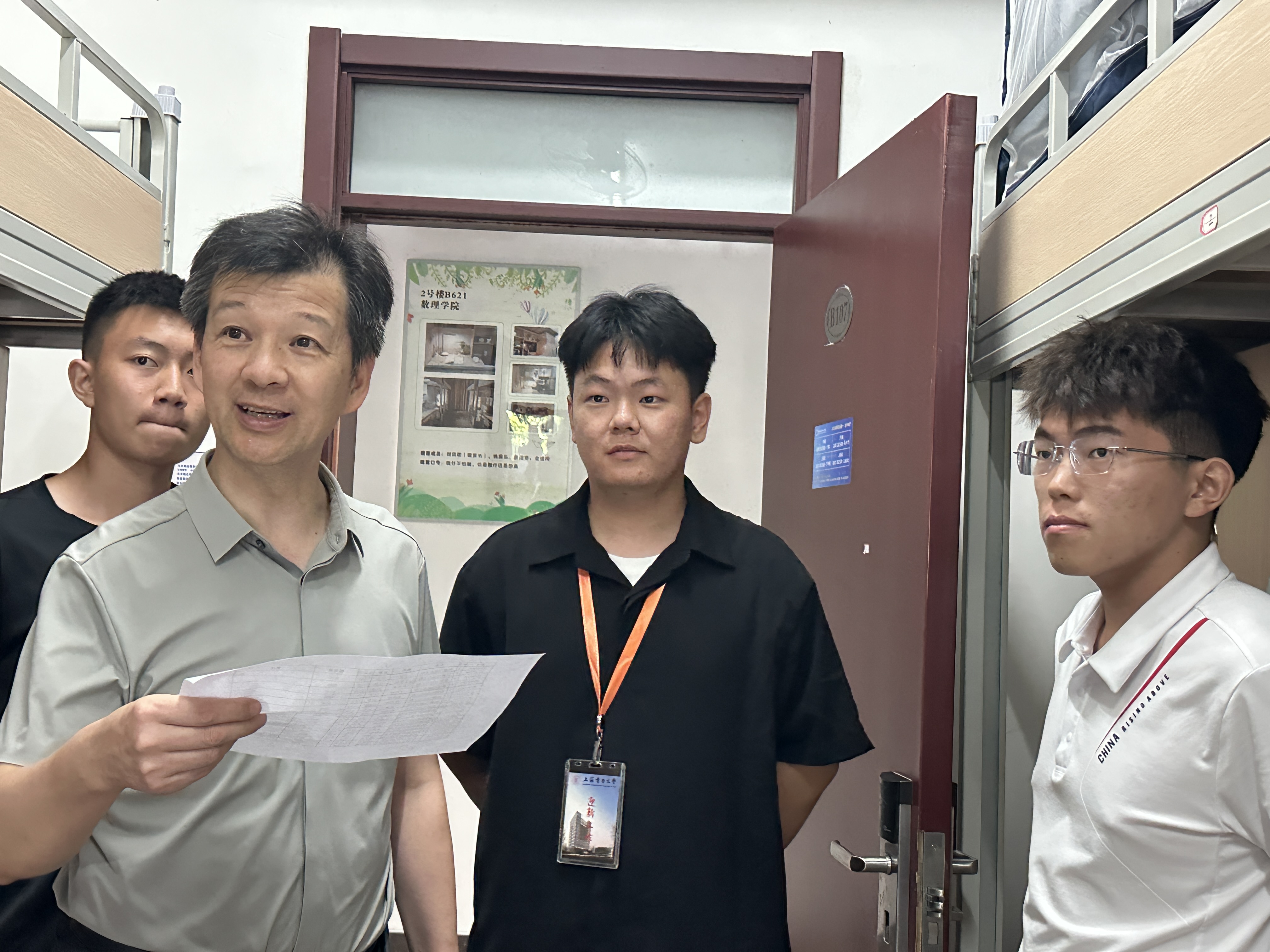 报到日下午,公司党政领导班子与辅导员一同深入新生宿舍,亲切看望刚刚安顿下来的新同学。走访中,院领导与新生及家长进行了亲切交流,细致询问同学们的生源地、入学感受及生活适应情况,耐心解答大家关心的问题,并勉励同学们要尽快转变角色,适应新环境,做好学业规划,互相关心、共同进步。亲切的问候与真诚的关怀让新生们深切感受到了能机学院大家庭的温暖。