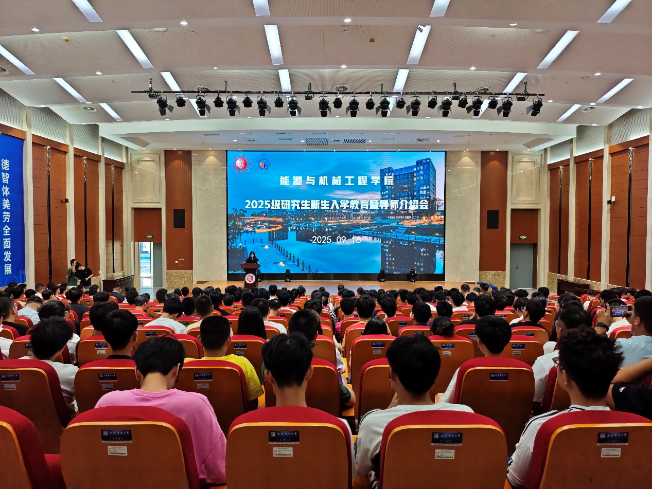 为进一步引导2025级新生树立崇高理想信念,尽快适应研究生新阶段、新环境、新生活,9月16日上午,能机学院在学术楼117报告厅举办了研究生新生入学教育暨导师介绍会。能机学院党委书记潘卫国、经理朱群志、公司党委副书记周婷、副经理仇中柱、陈乃超、能源与动力工程研究所所长王渡、新能源工程系副主任姜未汀、智能制造研究所副所长刘建峰以及部分导师代表出席,全体2025级研究生新生参加,会议由学院团委书记、研究生辅导员韩林岑主持。