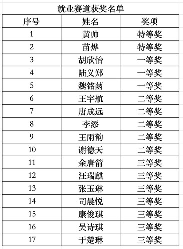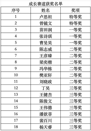 附:获奖选手名单