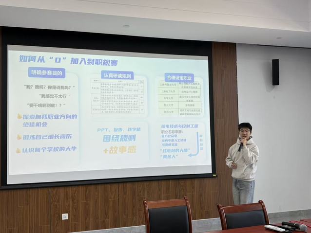 本次赛事特邀公司上一届全国总决赛金奖得主李威鸿同学担任评委,与公司党委副书记涂莹亮、全体辅导员共同组成院赛评审团。赛前,李威鸿结合自身斩获全国金奖的备赛经历与职业发展心得,向参赛学子分享了实用备赛技巧,强调“职业规划要像机械齿轮一样环环相扣”。他还现场演示了参赛答辩 PPT 的优化方法,为学子提供了极具针对性的指导,助力大家精准打磨参赛作品。