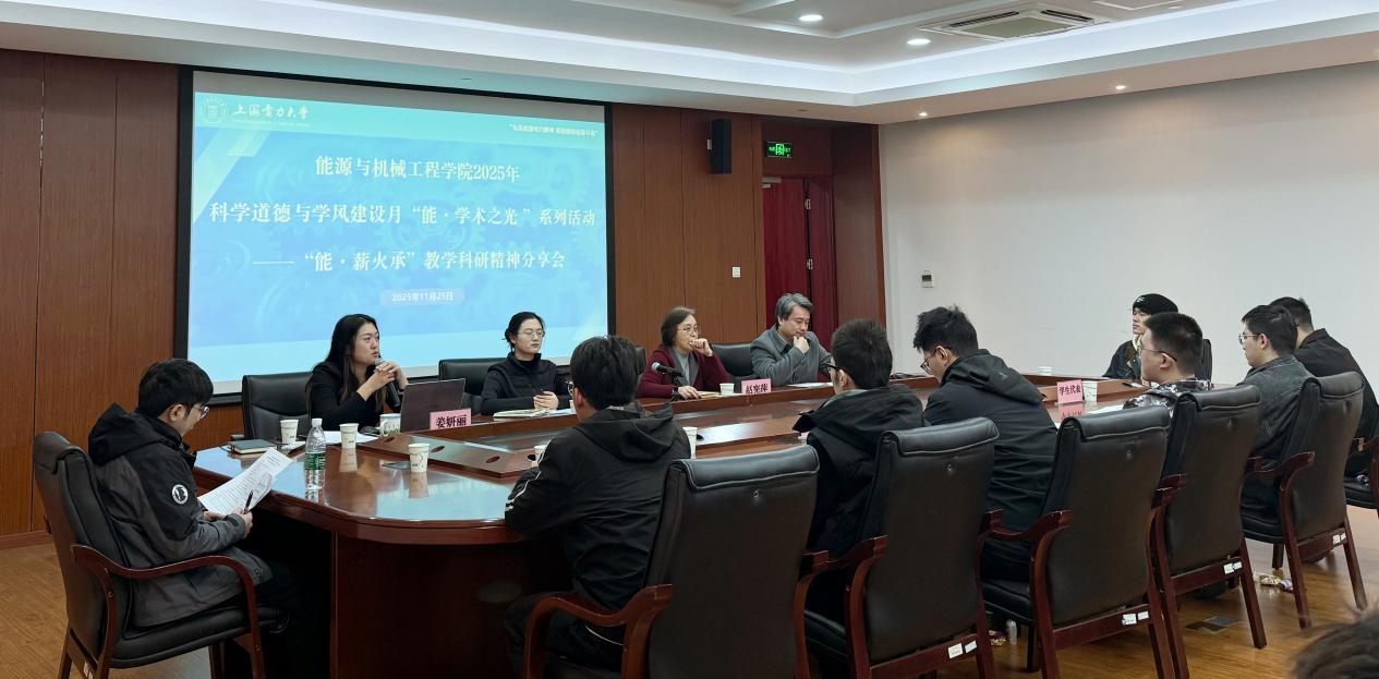为深入推进科学道德与太阳成集团tyc33455怎么进入,传承能动领域科研精神,引导青年学子对接国家“双碳”战略需求,11月25日下午,太阳成集团tyc33455在临港学术楼303会议室举办2025年科学道德与太阳成集团tyc33455怎么进入“能・学术之光”系列之“能・薪火承”科研精神分享会。