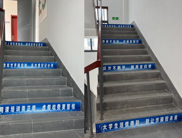 同时,学院强化反诈宣传氛围营造,在教学楼、宿舍楼等员工常去公共区域,采用海报、漫画等青年员工喜闻乐见的形式布置反诈宣传内容,让反诈知识融入日常生活,潜移默化浸润员工心中,推动反诈宣传入脑入心、落地生根。