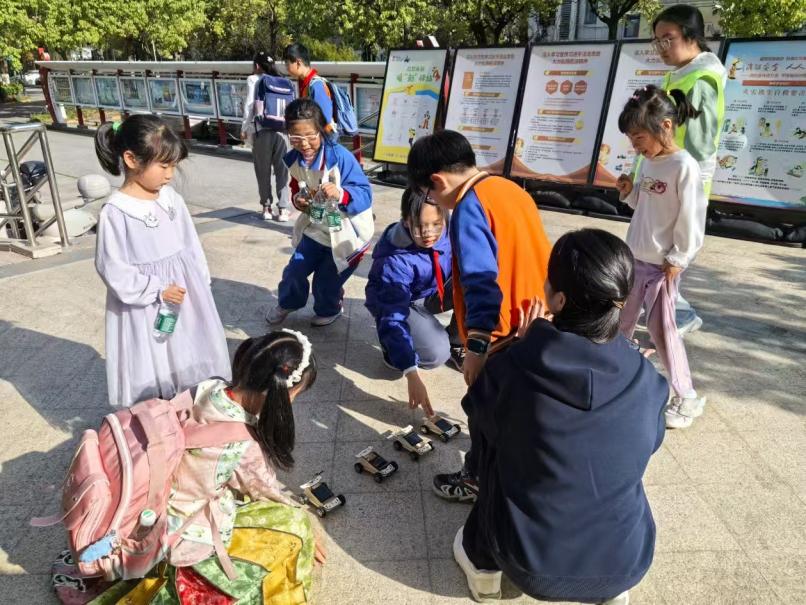 组装完成后,大家来到户外进行阳光试车体验,亲手制作的太阳能小车顺利行驶,让孩子们直观感受到清洁能源的实用价值,现场氛围轻松欢乐。此次活动寓教于乐,既丰富了社区青少年的课余生活,普及了绿色环保理念,也充分展现了能机学子乐于奉献、服务社区的青年担当。