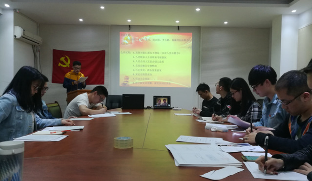 本科四年级第一员工党支部转正大会于2017年 4月17日晚上8:30在奋进楼218A举行。本次大会讨论了关于预备党员纪伟、章力、姜晨、杨金颖、李玉枫,杨康同志按期转正议题。
