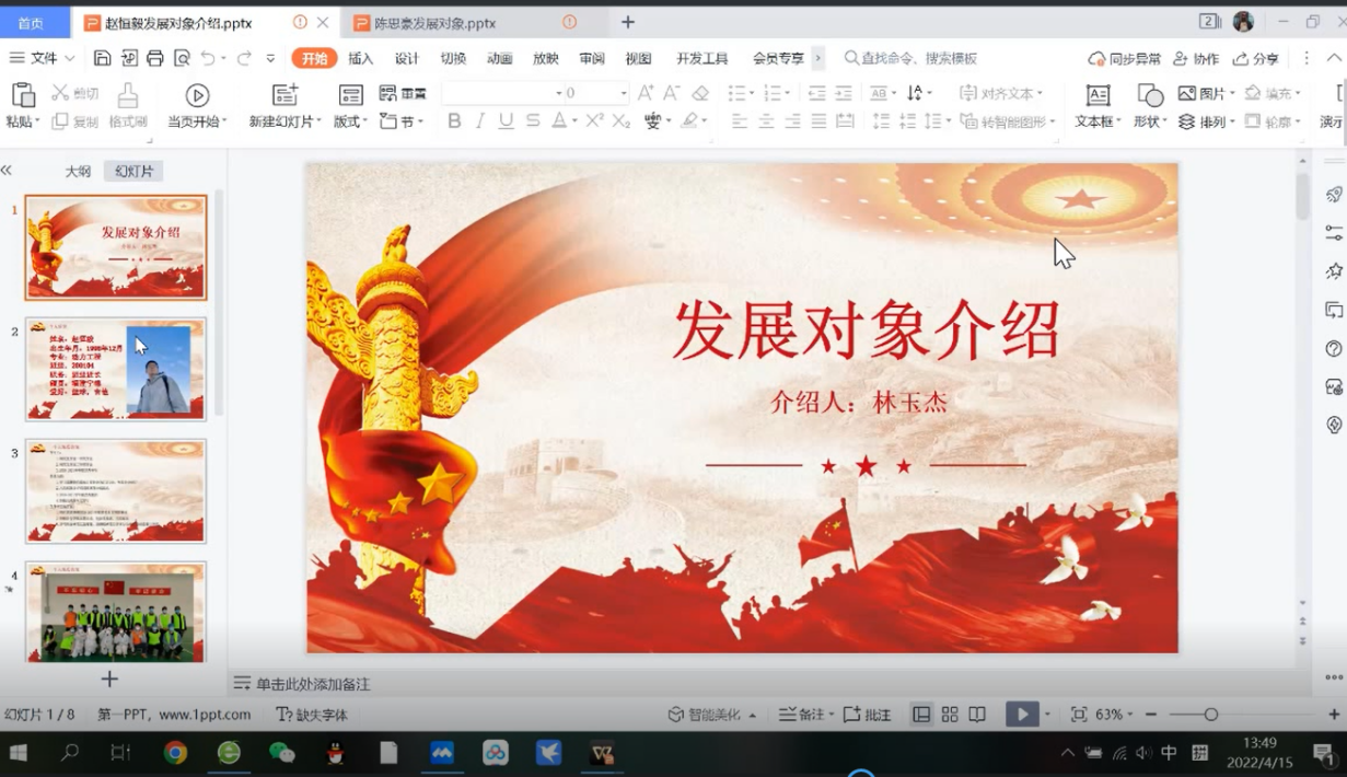此次“家乡美”环节中,有两名研一党员介绍了自己的家乡,张珍瑞同志介绍了家乡洛阳,不光有丰富的人文景观,还有丰富的红色资源:龙门石窟、白马寺、八路军驻洛办事处等。覃振坤同志介绍了家乡郑州,让党员同志了解了关于二七纪念塔的历史。