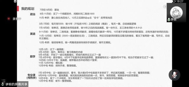 8名员工代表分别介绍了自己考研的基本情况,包括升入的学校、专业、分数以及备考这一年的心路历程,着重为同学们分门别类地讲述了备考的注意事项,不仅为同学们提供了考研的备考资料和建议,也为同学们列举了具体的应试方法。他们或用幽默的语言、或用恳切的话语叮嘱学弟学妹们首先一定要明确方向、坚定信心,以良好的精神面貌坚持到底、永不言弃;其次要合理规划时间,打牢基础,保持做题手感,找到适合自己的学习方法;同时也要注重心态,学会自我调适,适当放松并定期进行自我鼓励。