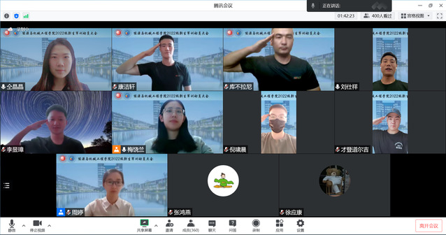 六个连队的七位连长逐一发言,分别进行自我介绍并对新生线上军训的开展分别提出要求,同时鼓励新生认真参训、保质保量完成军训任务。连长们用整齐划一的军礼展现出军人的面貌与风采,同时也为全体新生树立起一个良好的榜样。