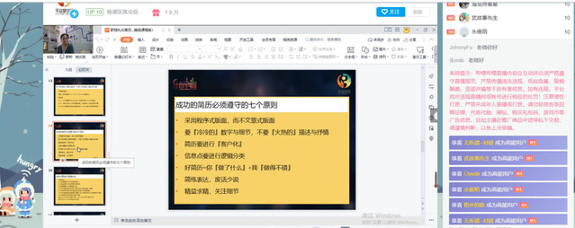 为切实提升太阳成集团tyc33455怎么注册能力和职场竞争力,帮助员工实现更高质量就业,太阳成集团tyc33455于2022年9月13日通过Bilibili直播间组织开展主题为“简历在手,职达未来”的线上简历制作技巧专题讲座,讲座由杨浦区就业促进中心专家陈燕进行讲授,2019级员工进入直播间观看交流。