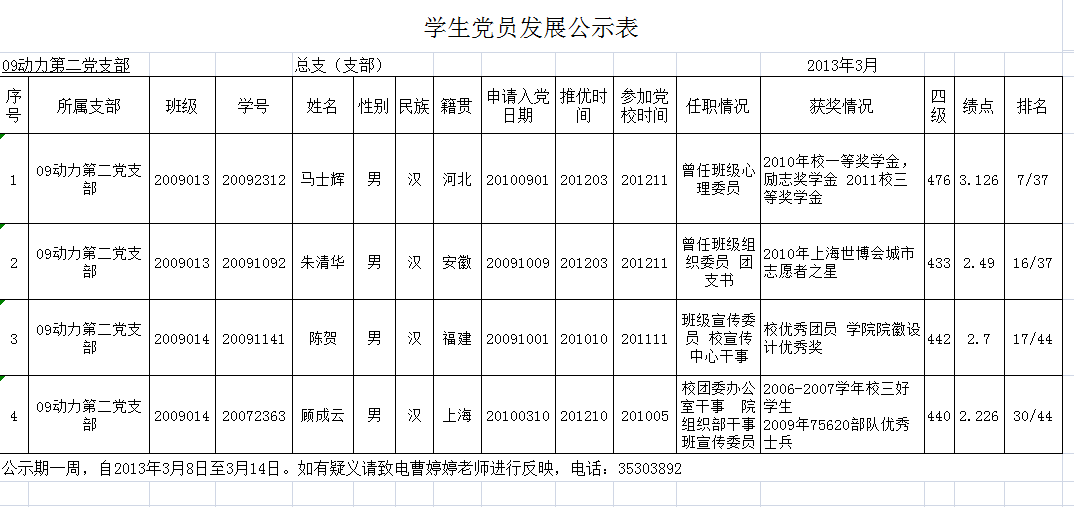 2009动力第二员工党支部员工党员发展公示表