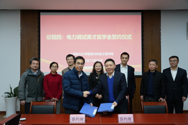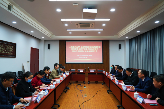 12月16日,公司与上海电力建设启动调整试验所有限公司产学研合作协议签订暨电力调试英才奖学金捐赠仪式在临港校区学术楼105会议室举行。上海电力建设启动调整试验所有限公司董事长兼总经理叶祺贤、副总经理茆顺涵、副总经理陆杰、办公室主任庄艳、市场经营部主任张丰和调研员张玮与会;公司总会计师张川、董事长办公室主任、基金会理事长李兆鹏和能机公司党政班子及教师代表参加会议。会议由能机公司党委书记潘卫国主持。