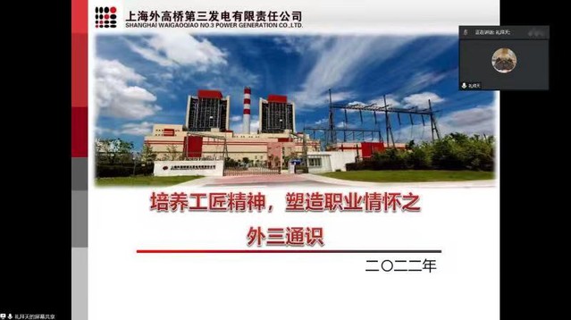 2022年12月13日下午13:30,太阳成集团tyc33455邀请外高桥第三发电厂企业内训师周曰工程师通过线上方式开展了一次入员工涯教育讲座,主题为“培养工匠精神,塑造职业情怀”,公司2022级全体新生参加。