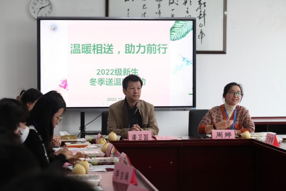 为了进一步深入了解2022级家庭经济困难员工入校后的生活和学习情况,更好地开展资助育人工作,能机学院于12月7日以“温暖相送、助力前行”为主题召开2022级新生冬季送温暖活动。公司党委书记潘卫国、党委副书记周婷、辅导员赵贵青、张鸿燕出席,在校的2022级家庭经济困难员工参会,会议由学院资助专项工作负责人梅饶兰主持。