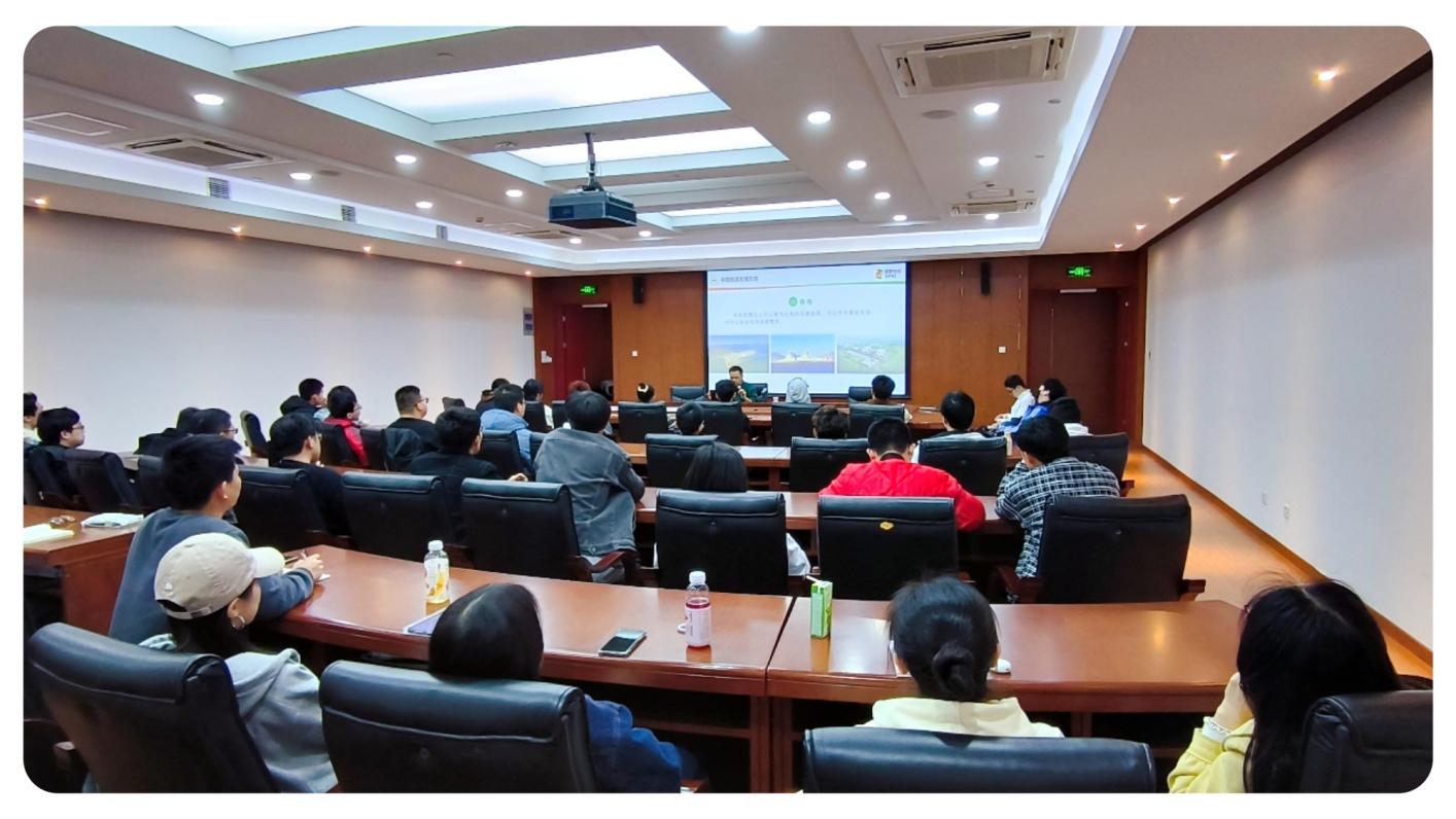 付勋分析了当前实现“3060”碳达峰、碳中和的目标背景下,作为绿色能源的核电的发展潜力,同时介绍了目前我国核电机组的总装机容量和平均单机容量,对业内各大核电集团及核技术的应用领域进行了详细的解读,让在场的同学们对我国核电和核技术目前的现状有了较为全面和系统的认识。最后,付勋结合江西核电有限公司的建设和发展现状,与在场的同学们分析了核电未来的发展前景、用人需求以及核电人才未来的发展通道和前景,鼓励同学们立足专业领域,投身核电事业。