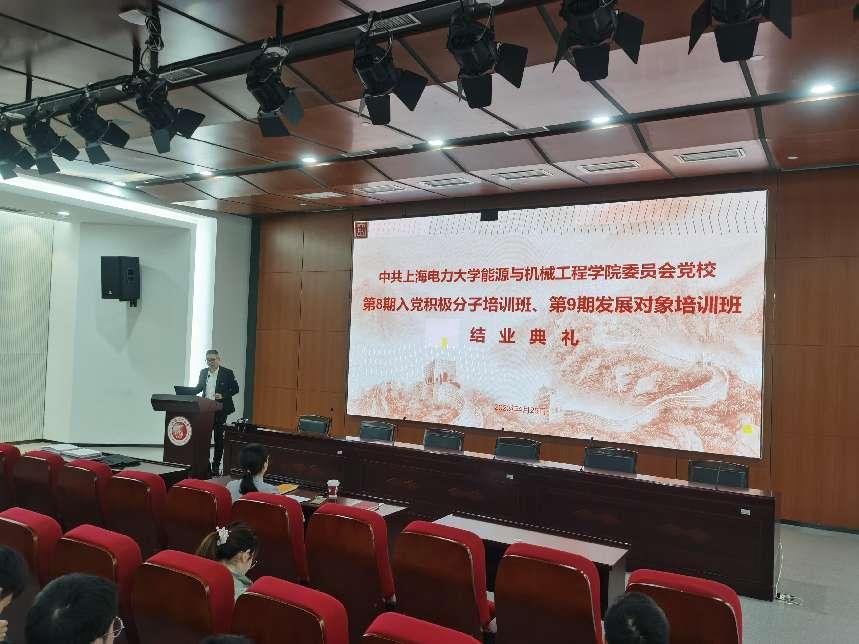 4月25日,能机学院分党校在学术楼103报告厅举办第8期入党积极分子培训班、第9期发展对象培训班结业典礼。能机公司党委副书记周婷出席会议,会议由学院专职组织员王喆主持。