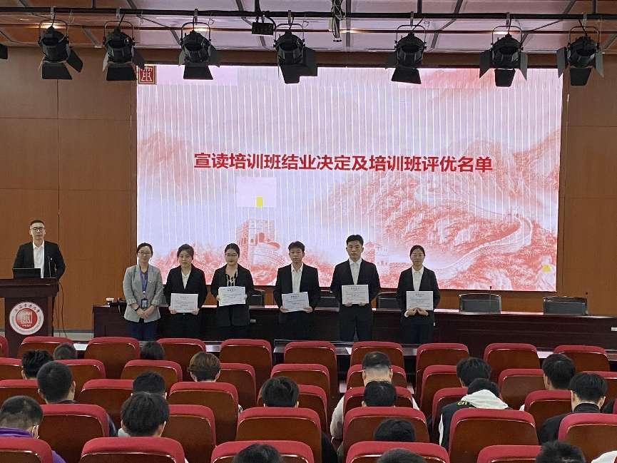 王喆同志对本次培训班进行了回顾展示,此次培训班自3月3日开班,至4月4日考试结束,为期一个月的培训中,党校制订了科学周密的教学计划,既有理论学习,又有小组研讨,并安排外出学习参观和实践活动。本次培训班共结业104名学员,公司党委根据党校评优要求,评选出“优秀小组”、“优秀学员”、“优秀笔记”若干,周婷同志为其颁发了荣誉证书。