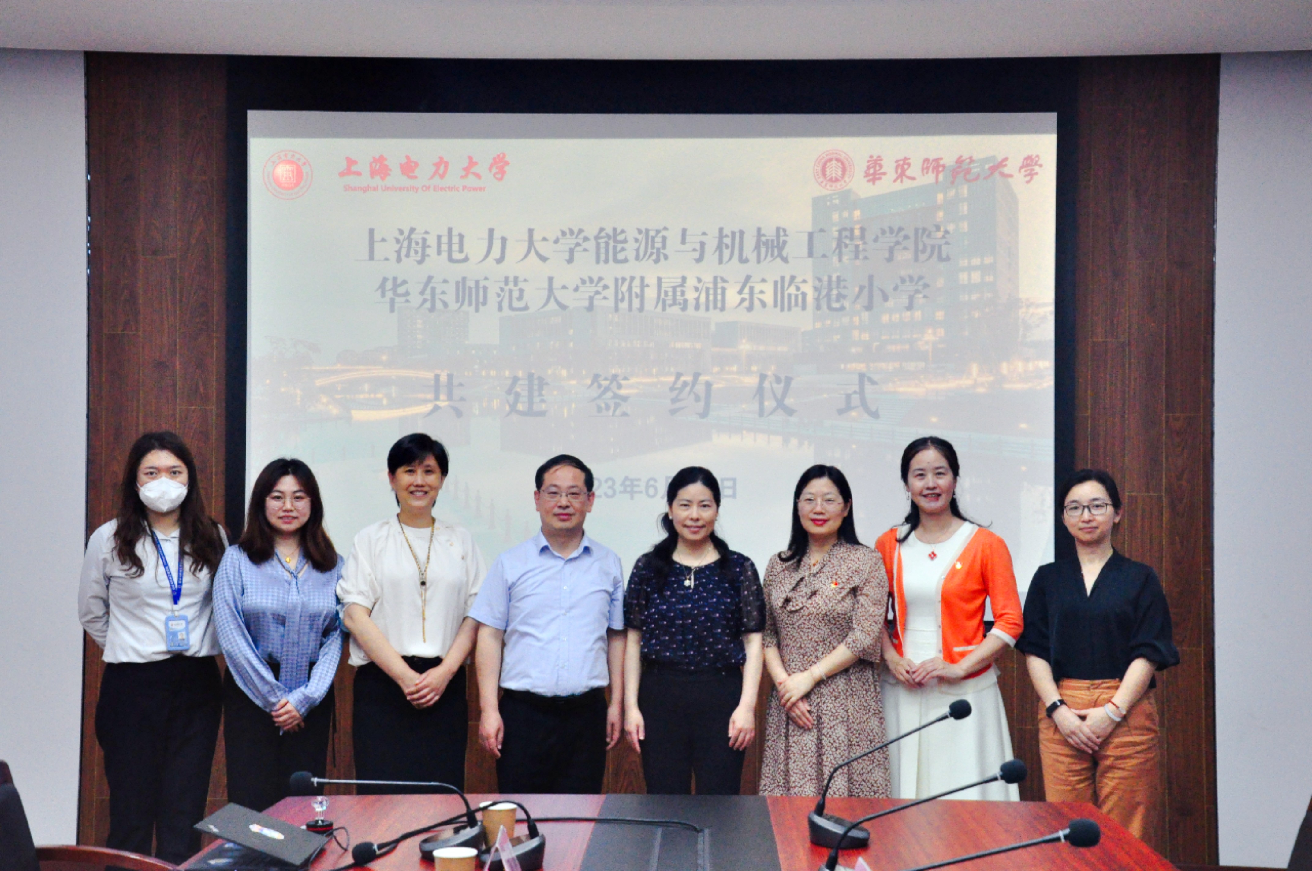 华东师范大学附属浦东临港小学董事长潘婷婷、支部书记沈金娟、董事长助理孙敏、美术教师耿玲丽参加签约仪式;校总会计师张川、校工会常务副主席毛静涛出席,能机学院经理朱群志、党委副书记周婷、团委书记韩林岑参加签约仪式。仪式由能机学院辅导员姜妍丽主持。