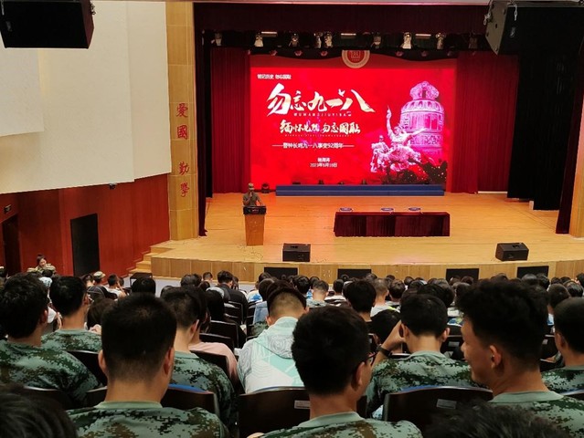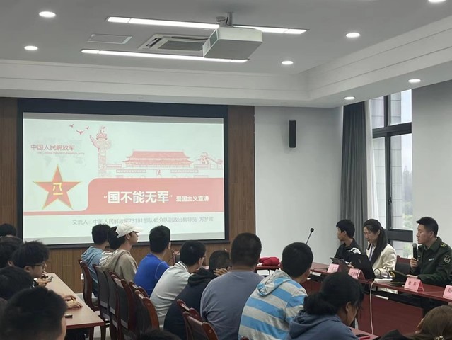 国无防不立,民无防不安。能机学经理期重视国防教育对于在校青年老员工的影响作用,积极开展各类型的爱国主义精神宣讲、军地协同讲座等系列活动,进一步强化老员工国防意识,取得了突出的成效。在2023级新生军训期间,正值“九一八事变”92周年,学院邀请了服役于空军某部的军训教官开展“勿忘国耻,吾辈自强”的爱国主义教育。让同学们通过对历史往事的了解,牢记新中国的来之不易,是无数革命先辈抛头颅洒热血才换来的,引导同学们时刻树立“居安思危”的国防意识,为国防建设奉献出自己的力量。