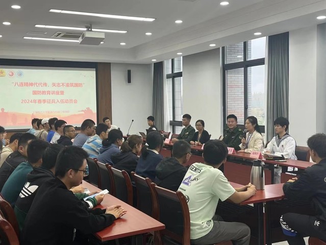 为进一步增强当代老员工国防意识、弘扬爱国主义精神,凝聚起强国兴军的磅礴力量,能机学院于10月13日在学术楼307会议室开展“国不能无军”国防教育讲座暨2024年春季征兵动员会。活动充分发挥军地合作优势,引入资源促进高校国防教育及征兵工作,中国人民解放军“南京路上好八连”所在营副教导员方梦晖少校受邀宣讲,能机械公司党委副书记周婷出席,学院征兵负责人仝晶晶主持。