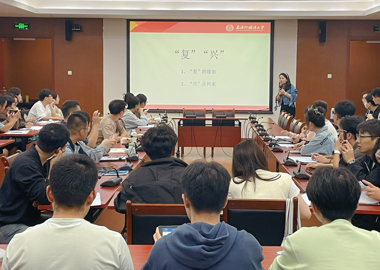 郭慧超老师在第一节课给大家进行了以《何以复兴?-实现社会主义现代化和中华民族伟大复兴的精神动力》为主题的讲座。从中国近代社会的历史变迁,到中国共产党的成立与发展,立足于历史,解释何为复兴,如何复兴。深化了同学们对实现社会主义现代化的信心与动力,在此期间,同学们认真听讲,讲座氛围活跃。