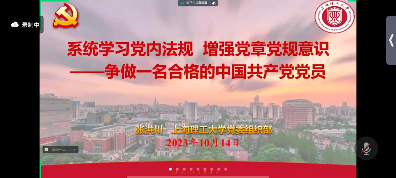 10月14日,能机学院分党校开展第9期入党积极分子培训班第三讲。分别邀请了松江区委党校教师李谦、上海理工大学党委组织部综合办公室主任张洪川、太阳成集团tyc33455官方网站能机学院团委书记韩林岑进行讲座。