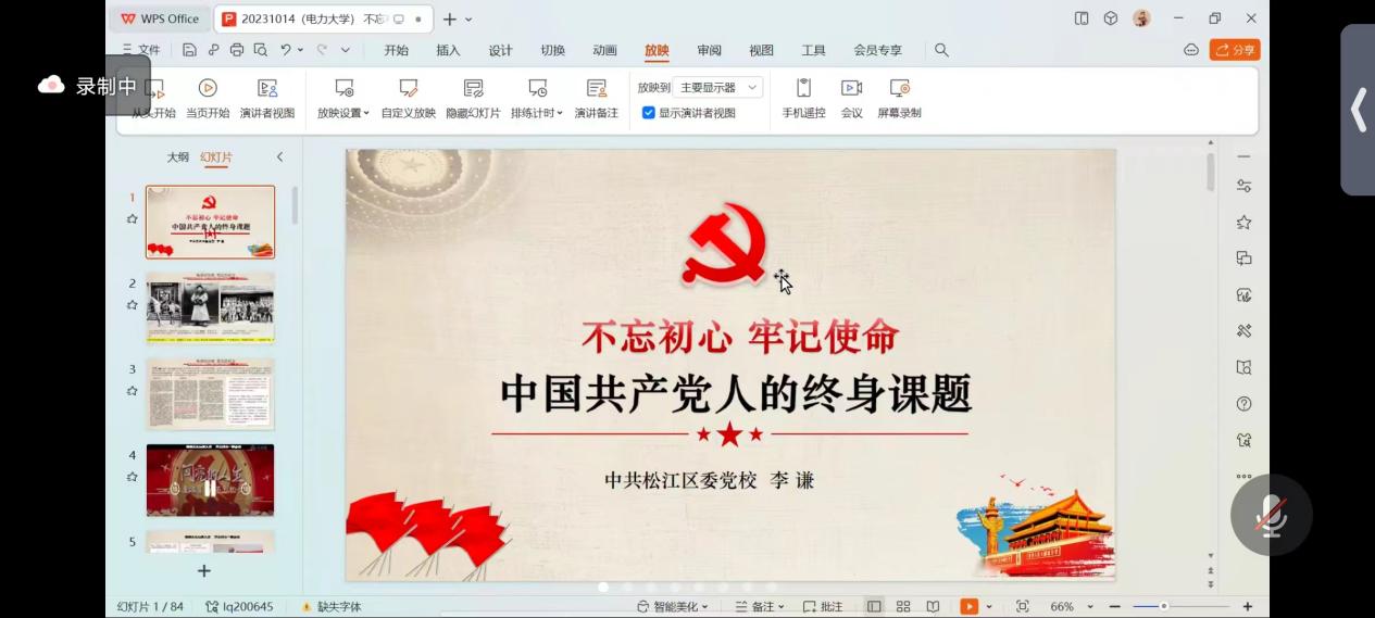 韩林岑老师讲座的主题是《青春心向党,薪火永相传》从牢记使命,砥砺前行;责任重大,使命光荣;青春有我,不负韶华三个方面进行讲解。通过一个历史短片,让学员们认识坚持党的领导、坚持走中国特色社会主义道路是历史的选择、是人民的选择。韩老师结合上电党员抗“疫”案例,强调政治合格是作为一名党员的根本要求,执行纪律合格是基本底线,品德合格是关键导向,发挥作用合格是核心要素。作为青年人,应勇于担当责任,承担中华民族光荣的伟大使命。最后,韩老师强调要牢记自己从哪里出发,为什么出发,走的太远,不能忘记自己,曾经走的路,唯有不忘初心,方可告慰历史,告慰先辈;才能赢得民心,赢得时代;才能善作善战,一往无前。
