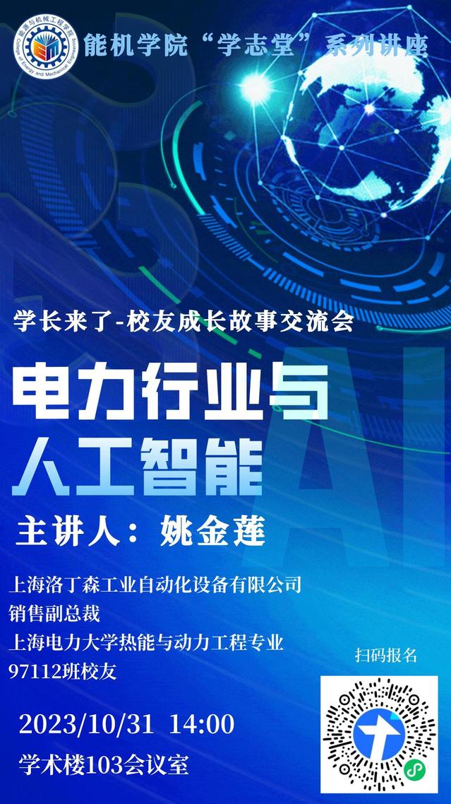 学志堂第17期讲座是能机学院“学长来了”的系列活动,能机学院有幸邀请到了本校1997级热能动力专业毕业的姚金莲学姐,为大家讲述电力行业与人工智能的发展现状与未来前景。