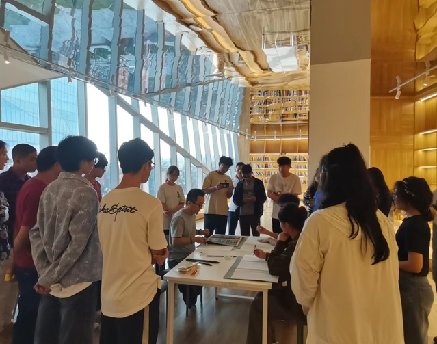 器山书局负责人徐巍为同学们介绍书局内的陈设,从金缮修复的古老瓷器,再介绍到茶韵悠然的茶盏茶盅,从生动有趣的古代大猫图介绍到现代《微生物》系列的独特艺术。在徐巍老师的娓娓道来中,同学们纷纷表示感受到了器山书局浓厚的文化气息。