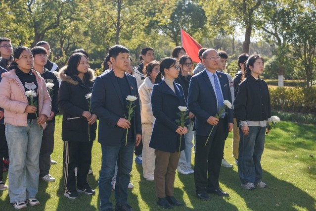 师生代表一同祭扫书院烈士纪念碑和浦东公安英烈墙,为革命烈士们及在和平年代奉献出生命的公安干警们敬献鲜花并进行鞠躬默哀。在陵园讲解员的带领下,参观了园内红色教育景点,进一步提升员工爱国情怀、培育文化素养,加强青年员工的文化自信。