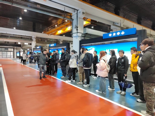在讲解员成佳杰的带领下,同学们来到了叶片中心,宽敞明亮的厂房,智能化的生产平台,让同学们无不感叹现代化工业的魅力。作为汽轮机的“心脏”的叶片,上海汽轮机厂在一次次的技术革新中,不断刷历史纪录,填补国内空白,制造技术一直处于行业前端,让同学们真切感受到了“一丝不苟、精益求精”的企业精神。