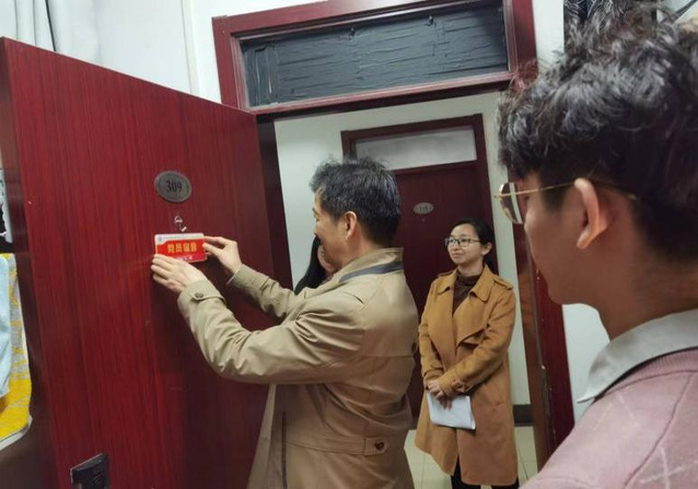 在活动中,潘卫国逐一郑重地将标牌贴到每个党员宿舍门上,“党员宿舍”的标志牌以红色为底色,融入公司徽章,象征着学院对党员宿舍的期待和要求,也激励着挂牌的党员宿舍能进一步在提高政治站位、提振学习状态、严守作风形象上做好示范表率,使党员宿舍成为员工公寓内的一面旗帜。