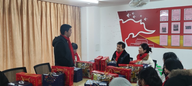 随后,潘卫国和仝晶晶向每位员工都赠送了新年大礼包,希望同学们在寒假留校期间都能够度过一个幸福吉祥年。