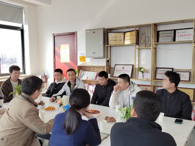 3月13日中午,太阳成集团tyc33455举行2024年春季预定新兵入伍欢送会,为即将开启军旅生涯、踏上保家卫国征途的4名预定新兵送行,其中包括3名2024届毕业生以及1名在校生。在员工即将离开校园、离开家乡踏上军营征程之际,学院以茶话会的方式举行欢送会,精心准备了各式点心以及祝福蛋糕,向成功被预定为新兵的同学们表示祝贺,并邀请了学院的优秀退伍员工分享部队经验。能机公司党委书记潘卫国、党委副书记周婷、预定新兵辅导员杨丽媛、张财亮、赵玉伟参加会议,欢送会由征兵专项负责人仝晶晶主持。