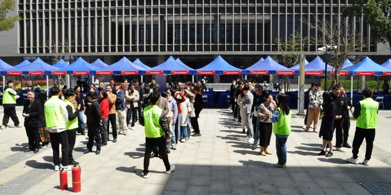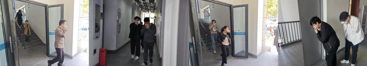 而在3月29日,随着消防警报的响起,能机大楼内展开了一场紧张而有序的消防演习。师生们按照预演的疏散路线,掩住口鼻,迅速从教学楼撤离,安全到达集结点。演练中,不仅体现了师生的迅速反应和高效协作,也展现了学院精心组织的成果。