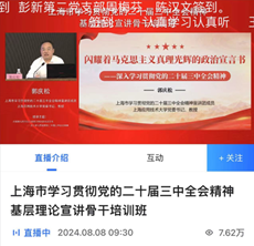 主动学,线上学习共进步。8月,“学志”团全体成员积极参加上海市学习贯彻党的二十届三中全会精神基层理论宣讲骨干培训的线上课程。跟随专家的解读,认真学习《闪耀着马克思主义真理光辉的政治宣言书--深入学习贯彻党的二十届三中全会精神》《发挥经济体制改革牵引作用,全面推进中国式现代化--党的二十届三中全会精神解读》等内容。