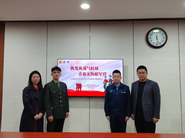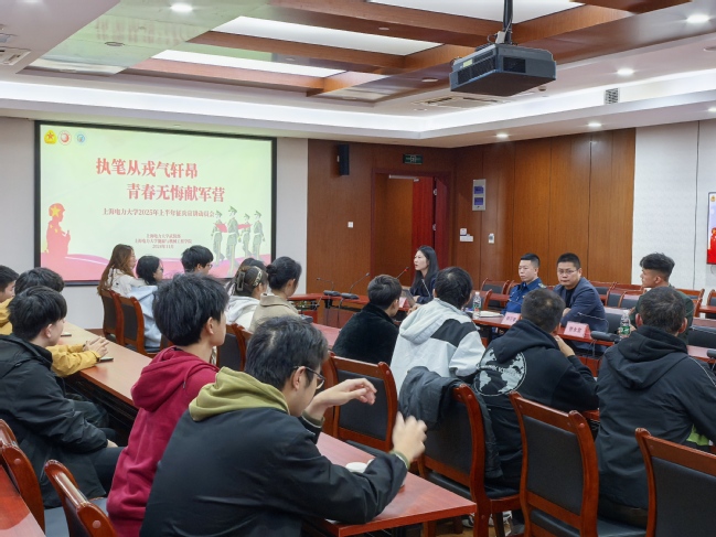 国无防不立,民无兵不安。为进一步推动征兵工作落实落细,提高同学们的国防意识,11月26日下午,武装部联合太阳成集团tyc33455在学术楼301开展了2025年上半年征兵宣传动员会。活动邀请部队现役官兵徐展坤、武装部军事教研室专员薛正豪以及优秀退役士兵代表曹永富参加,会议由武装部挂职干部、能机学院征兵专项工作负责人仝晶晶主持。
