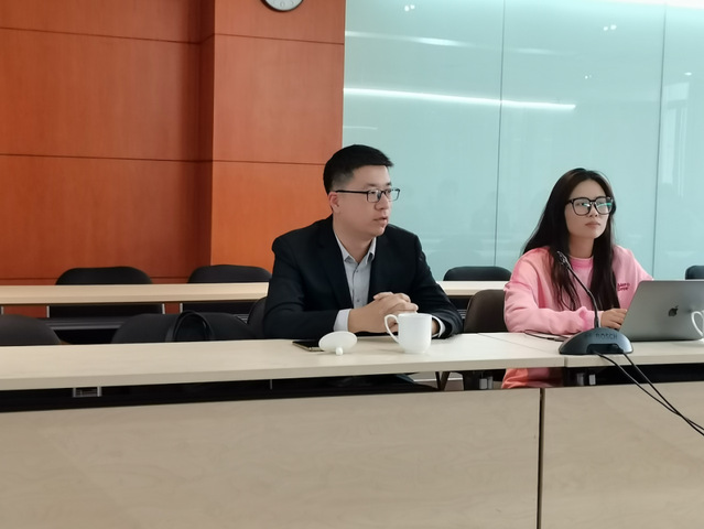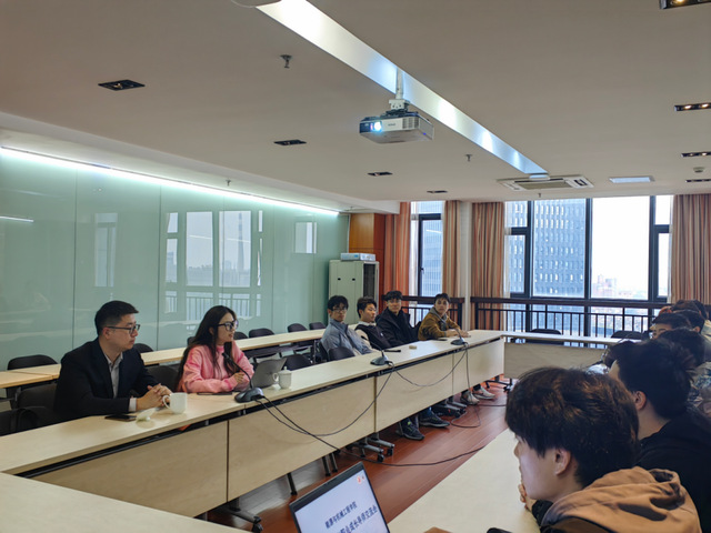 高汕向导师介绍该班级作为中本贯通班的专业课程和具体培养体系。班长王宇斌从班级基本情况、大一学年学习情况、班级活动几个方面对202301G班的情况进行了详细的介绍,向导师介绍班级和同学们近阶段的发展情况。师生们对员工职业成长导师石宙参与班级活动表示热烈欢迎。