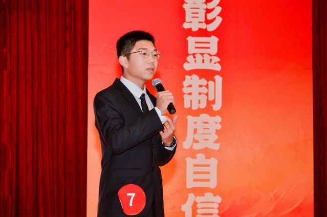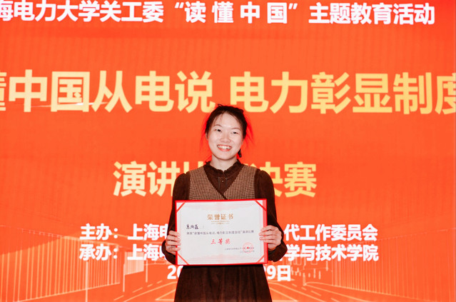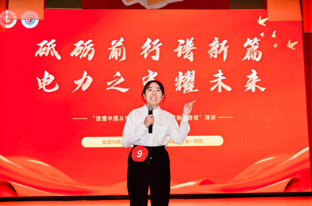 惠雨鑫以《电力辉煌,制度领航》为主题展开演讲,阐述了中国电力事业的辉煌成就和制度优势。从新中国初期的电力匮乏到如今世界第一的发电量,每一步发展都彰显了中国特色社会主义制度的强大力量。作为电力事业的接班人,我们要不负时代,以青春之力,助力中国电力事业的持续辉煌。