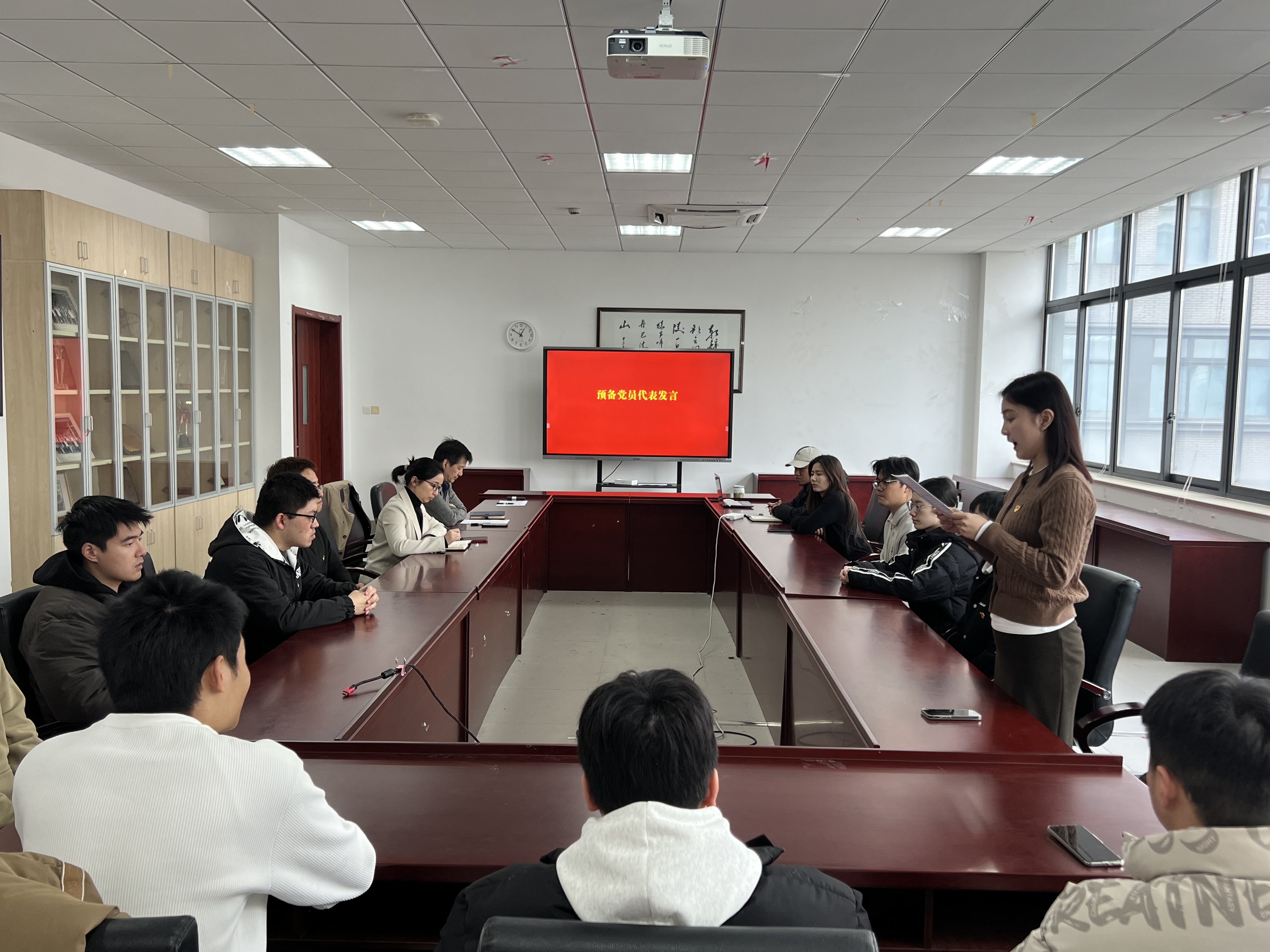 李姝瑶同志作为预备党员代表进行发言,她表示青年党员应在新时代中积极追求知识与创新,勇于探索未知领域,不断提升自我综合素质,要怀抱梦想又脚踏实地,敢想敢为又善作善成,立志做有理想、敢担当、能吃苦、肯奋斗的新时代好青年。