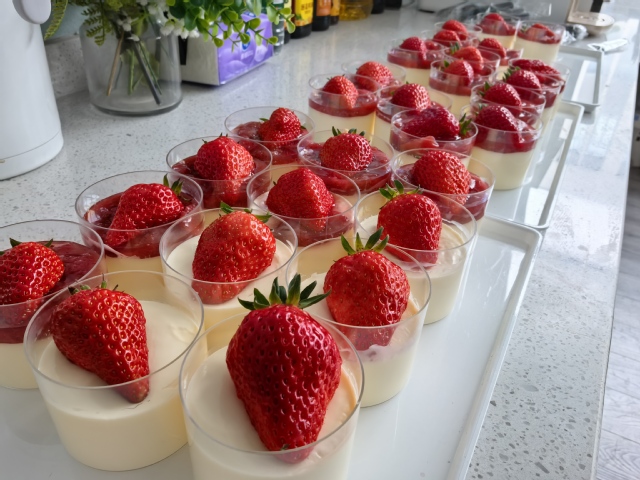 甜蜜烘焙,幸福滋味。在甜品制作环节,学院工会为大家准备了当季的新鲜草莓,大家亲手熬制草莓果酱、制作蛋糕底坯,再将新鲜草莓点缀在蛋糕上,制作出一个个精致美味的草莓牛奶冻。大家品尝着亲手制作的甜品,分享着烘焙的乐趣,甜蜜的笑容洋溢在每个人的脸上,幸福的味道在空气中弥漫。