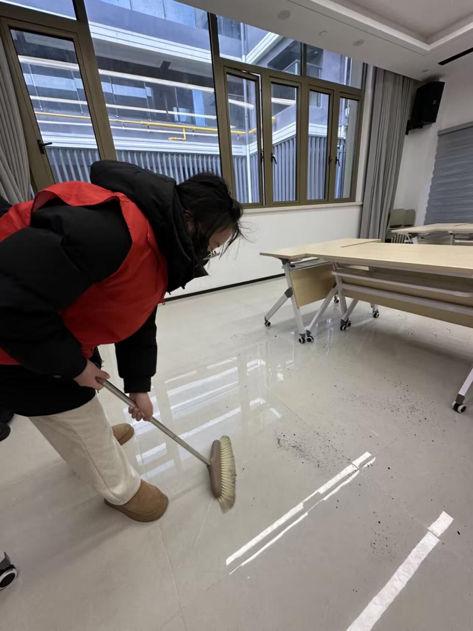 上午9时,身着红色志愿服的志愿者携带专业清洁工具准时抵达社区党群服务中心。在社区工作人员指导下,志愿者团队划分为环境清洁、设备维护、档案整理三个工作组展开行动:环境组志愿者采取"纵向到底、横向到边"的立体化作业模式,对党群服务中心会议室、走廊等公共区域实施系统清洁,设备维护组机械工程专业员工发挥学科优势,完成电子设备散热系统除尘保养;档案组志愿者运用标准化分类法,系统整理社区党建档案。经过三小时协同作业,党群服务中心窗明几净,档案柜陈列规范有序,设备运行效能显著提升。