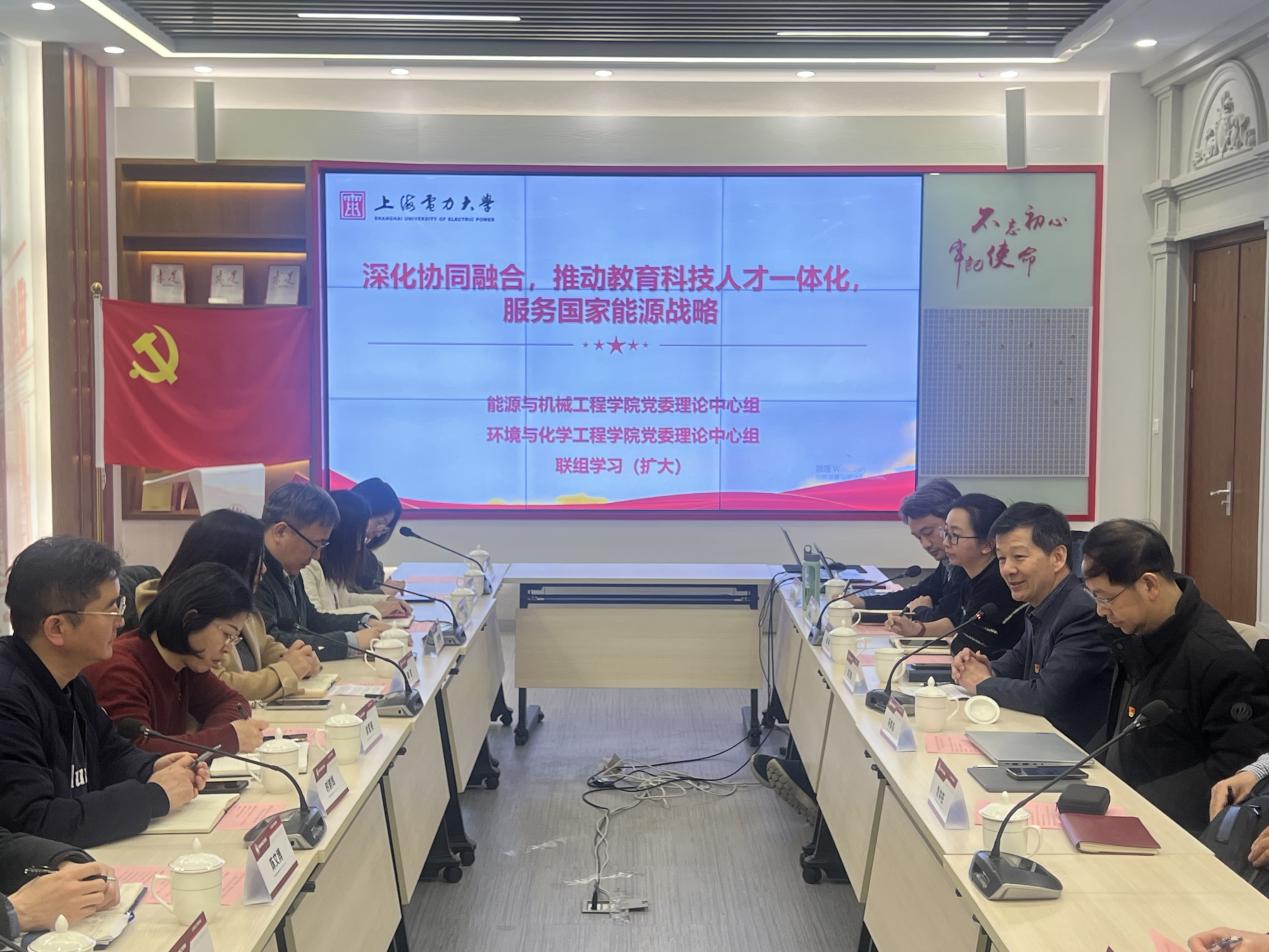2025年3月10日,能机学院与环化学院在临港校区学术楼102党建服务中心举办了主题为“深化协同融合,推动教育科技人才一体化,服务国家能源战略”的二级中心组联组学习。能机公司党委委员、环化公司党委委员、两学院教师代表出席,党建服务中心/党建督察室党建督察员周维刚列席会议,能机公司党委书记潘卫国主持会议。